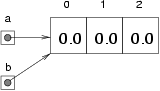 double[] a = new double [3];This code creates one array of three doubles, and sets two different variables to refer to it. This situation is a form of aliasing.