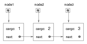 Lists are made up of nodes, where each node contains a reference to the next node in the list. In addition, each node usually contains a unit of data called the cargo. In our first example, the cargo will be a single integer, but later we will write a generic list that can contain objects of any type.
