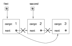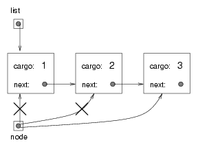 Obviously one way to modify a list is to change the cargo of one on the nodes, but the more interesting operations are the ones that add, remove, or reorder the nodes.