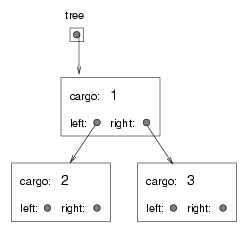 public class Tree {Like list nodes, tree nodes contain cargo: in this case a generic Object. The other instance variables are named left and right, in accordance with a standard way to represent trees graphically: