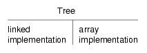 To help keep some of this straight, it is sometimes useful to draw a diagram showing the relationship between an ADT and its possible implementations. This figure shows that there are two implementations of a tree: