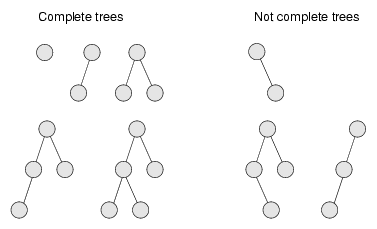 Both of these properties bear a little explaining. This figure shows a number of trees that are considered complete or not complete: