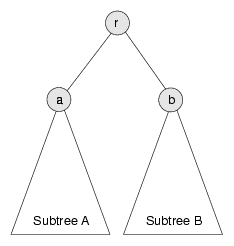 The root node has priority r and two subtrees, A and B. The value at the root of Subtree A is a and the value at the root of Subtree B is b.